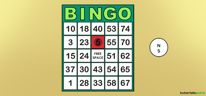 賓果遊戲是一種遊戲,遊戲中的每個玩家都匹配寫在卡片上的數字,這些數字以各種配置排列。遊戲的叫號員或主持人隨機選擇一個數字,並用一個標記將其標記。當玩家注意到所選數字在他們的牌組中排成一行時,他們會喊“Bingo!”,讓其他玩家知道他們有一張獲勝的卡片,這會導致比賽的主持人檢查卡片以確保他們獲勝。