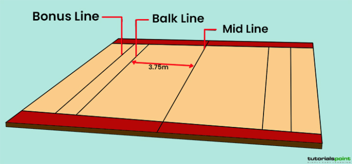 中線將場地分成兩半,並劃分每個隊伍的區域。對方突襲者必須越過中線才能開始突襲。