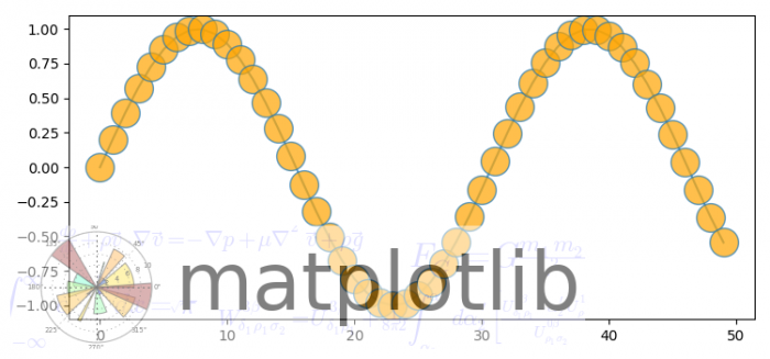 ax.plot(np.sin(10 * np.linspace(0, 1)), '-o', ms=20,