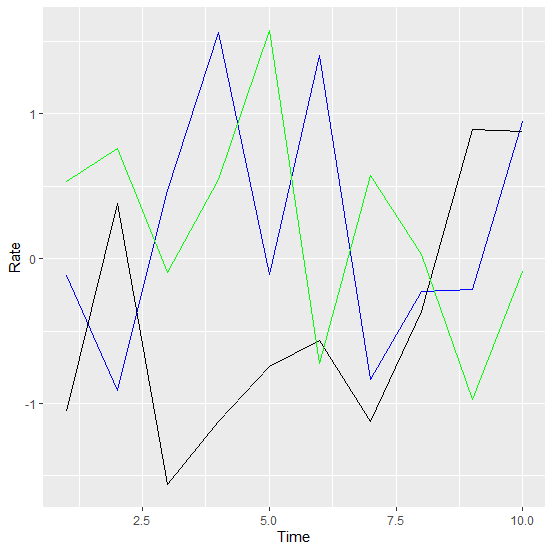 geom_line(aes(x3,y3),color="green")+xlab("Time")+ylab("Rate")輸出
