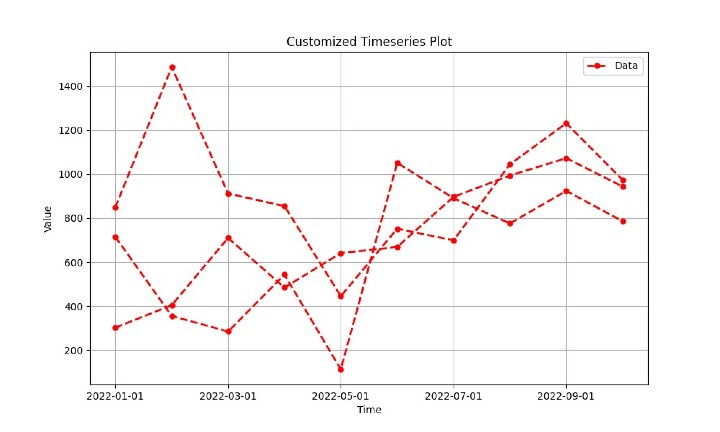 Pandas 和 Matplotlib 為我們提供了靈活性,我們可以自定義時間序列圖。您可以調整包括線型、標記樣式、配色方案和軸格式在內的各個方面。