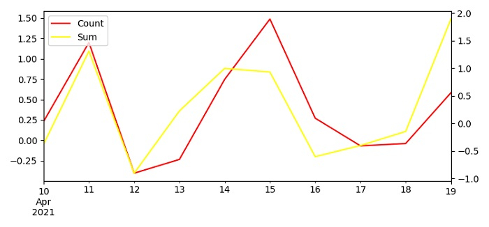 為了在同一個圖上繪製帶有圖例和輔助 Y 軸的兩個 Pandas 時間序列,我們可以採取以下步驟 −