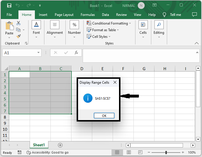 在這裡,我們將首先選擇單元格區域,然後建立一個 VBA 模組,然後執行它以完成任務。因此,讓我們來看一個簡單的過程,瞭解如何在 Excel 中彈出訊息框以顯示單元格區域或單元格值。