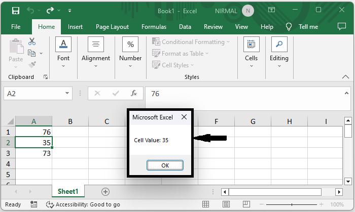然後使用 Alt+Q 儲存並關閉 VBA。然後您將看到,點選單元格時單元格值將會彈出。