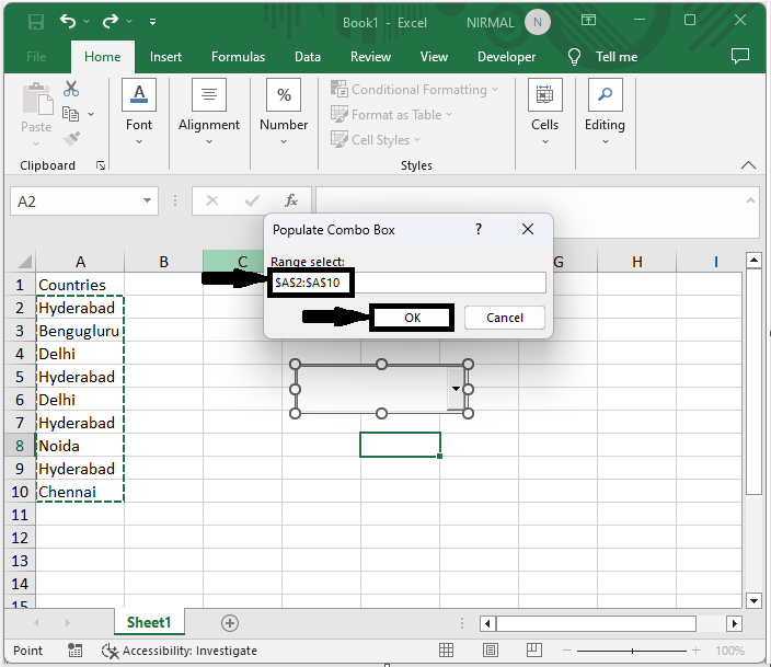 在這裡,我們將首先插入一個組合框,然後為其分配一個宏來完成任務。讓我們來看一個簡單的過程,瞭解如何在Excel中僅使用唯一值填充組合框。