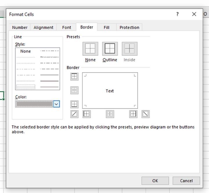 現在轉到邊框選項卡。這裡我們選擇灰色。我們選擇灰色是為了與網格線顏色匹配。