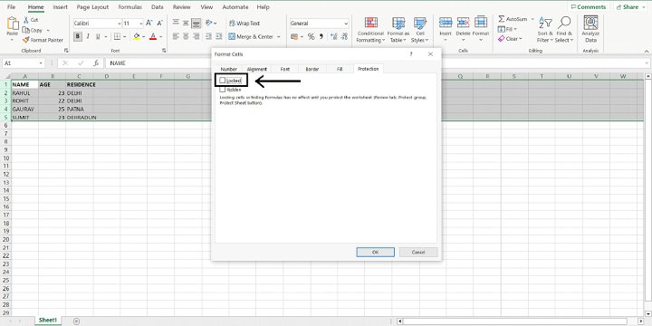 Excel單元格預設情況下是隱藏的。由於此附加步驟,即使在工作表受保護後,所選單元格仍將保持鎖定狀態。