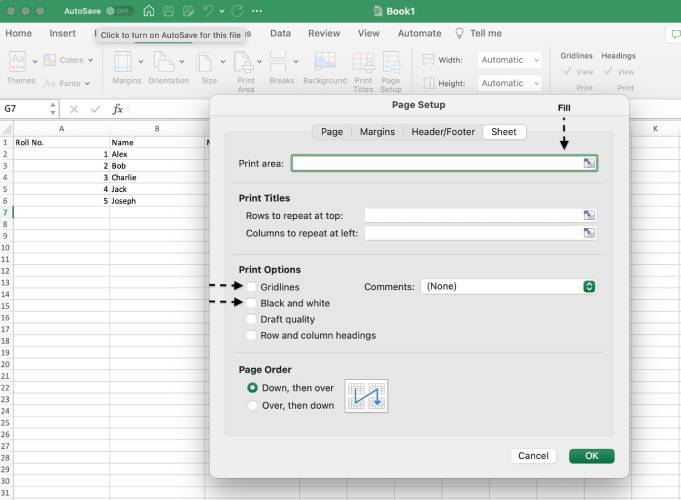 當您指定列印區域並修改頁面佈局時,Excel 會為您提供新增網格線和邊框等功能的機會。可以透過選擇相關引數在每個頁面周圍生成邊框。