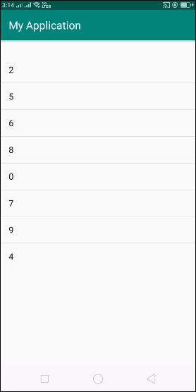 在以上結果中,我們顯示了整數陣列,現在檢查Android Studio中的日誌,如下所示 -
