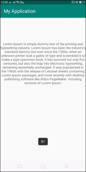 在上述程式碼中,我們已獲取文字檢視以顯示段落,吐司將顯示有關單詞數的資訊。
