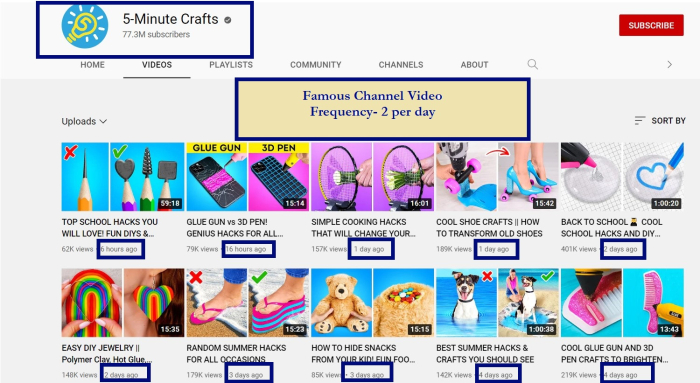 還要定期釋出影片,一旦創作者開始定期釋出影片,他就可以讓觀眾養成觀看內容的習慣,並獲得更多觀看量。