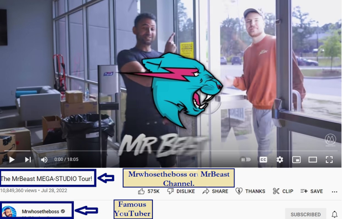 Mrwhoseistheboss 在 Mr. Beast 頻道上交叉推廣了他的頻道。