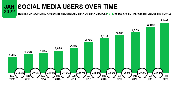 從下面的統計資料可以看出,社交媒體使用者正在日益增加。