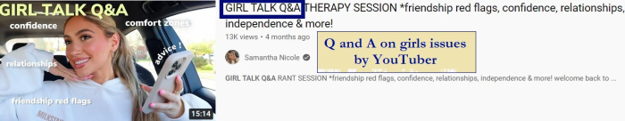 一個 YouTube 頻道正在進行關於女孩話題的問答環節。