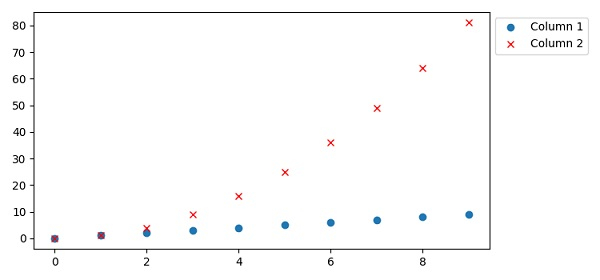 使用 legend(),在圖形上放置一個圖例。bbox_to_anchor 關鍵字為手動圖例放置提供了很大的控制度。例如,如果你想要將軸圖例放在圖形的右上角,而不是軸的角部,只需指定角的位置,以及該位置的座標系。