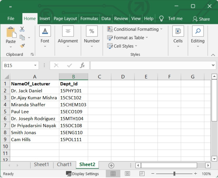 在我們的示例中,我們打開了一個 Excel 檔案,如下面的影像所示。