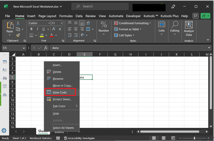 轉到當前工作表選項卡,該選項卡位於工作表的底部。使用右鍵單擊並單擊選項“檢視程式碼”。請參考下圖。
