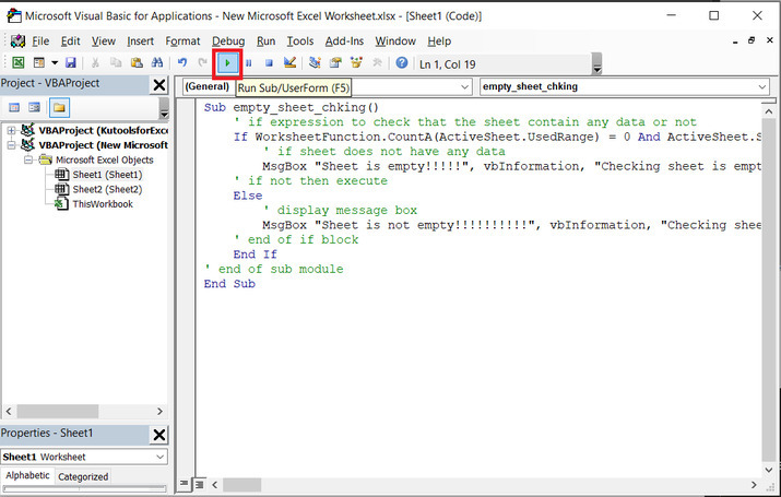 示例 1:要檢查工作表在 Excel 中是否為空,使用者可以使用 VBA 程式碼