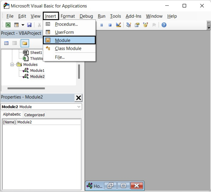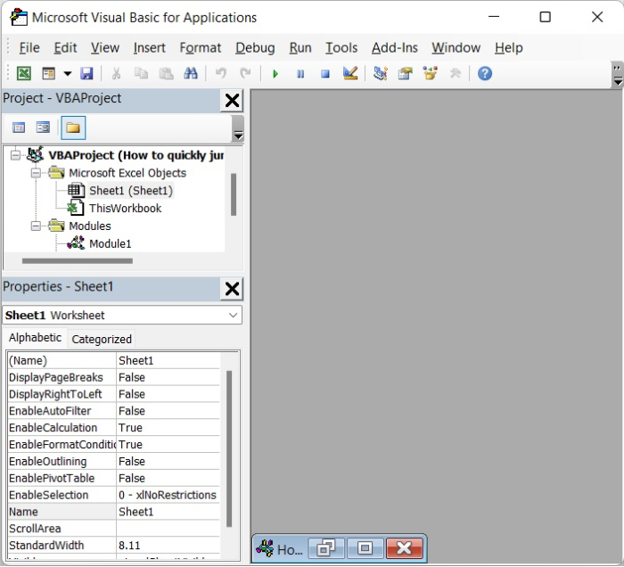 要新增VBA程式碼,請透過同時按下Alt鍵和F11鍵(Alt+F11)開啟**Microsoft Visual Basic for Applications視窗**。