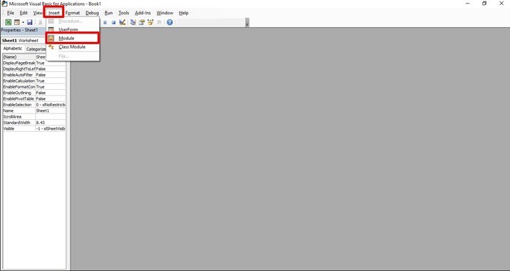 按ALT + F11訪問 Visual Basic 編輯器。從“插入”選項卡插入一個新模組。