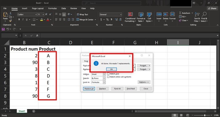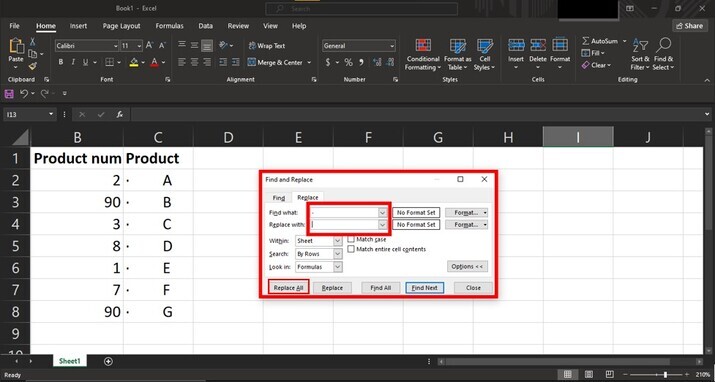 將“替換為”欄位保留為空白,將其設定為空白。請注意,刪除專案符號會將它們替換為空格;因此,刪除數字通常會在單元格中留下空白,而不是壓縮單元格內容。