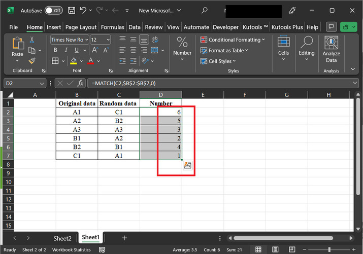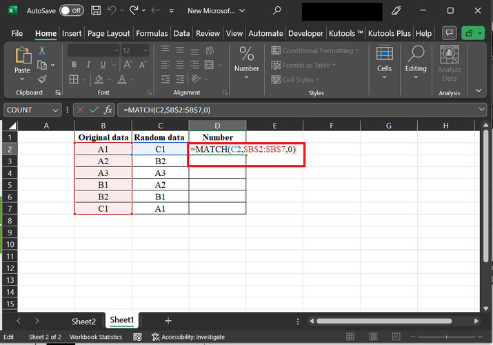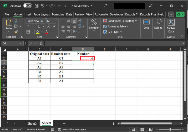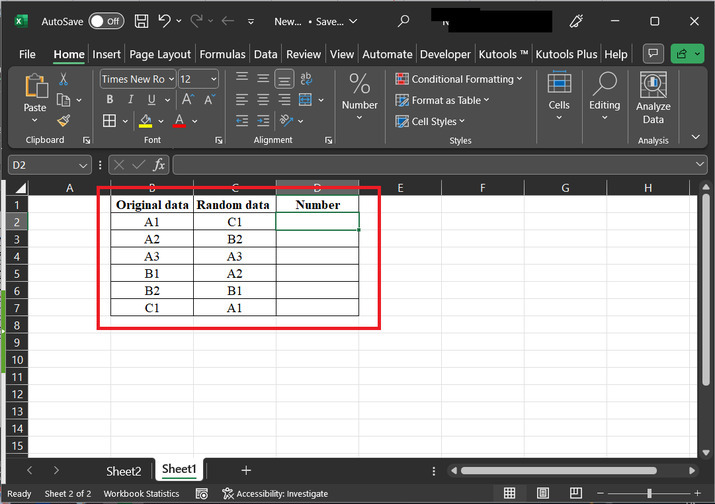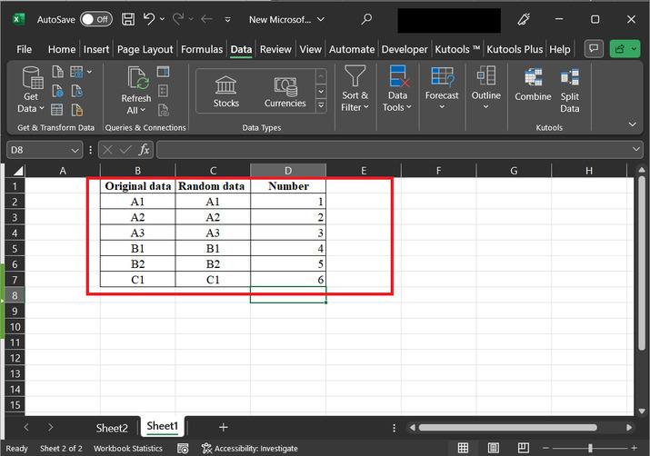 本文指導使用者在Excel中排序行以匹配另一列。在本例中,我們假設第一列的資料儲存帶有“原始資料”列標題的資料,第二列包含隨機資料,第三列包含數值。下面提供資料的快照。