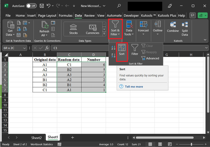 之後,轉到“資料”選項卡,然後單擊“排序”選項。下面提供相同的快照。