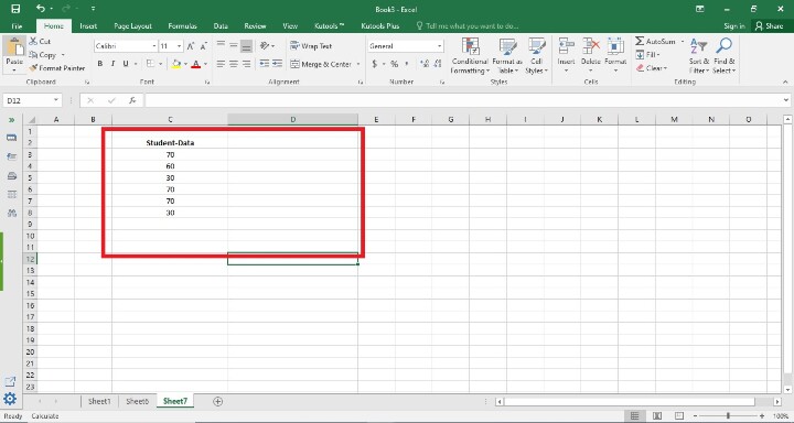 第一步,使用者在工作表中建立一個列,例如“學生資料”。以下是此步驟的螢幕截圖。