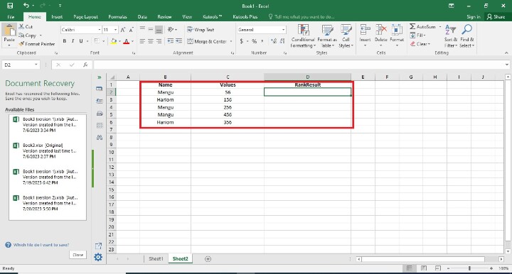 在此步驟中,使用者必須找到剩餘的排名結果單元格。這可以透過兩種方式完成。第一種方法是使用者透過編寫其初始值在每個單元格中編寫公式。第二種方法是一種簡單的方法,使用者只需將填充柄拖動到最後一個單元格即可。以下是此步驟的螢幕截圖。