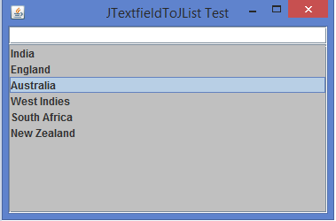 JList 作為 JComponent 類的子類,允許使用者選擇單選或多選。JList 類本身不支援捲軸。要新增捲軸,我們必須將 JScrollPane 類與 JList 類一起使用。然後,JScrollPane 會自動管理捲軸。DefaultListModel 類提供列表模型的簡單實現,可用於管理由 JList 控制元件顯示的專案。我們可以透過使用 DefaultListModel 類的 addElement() 方法向 JList 新增專案或元素。我們還可以透過從文字欄位讀取輸入值向 JList 中新增專案或元素。