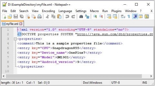 //Storing the properties file in XML format