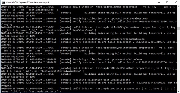 { "ok" : 1 }以下是實現上述查詢後的截圖。它將減少儲存空間