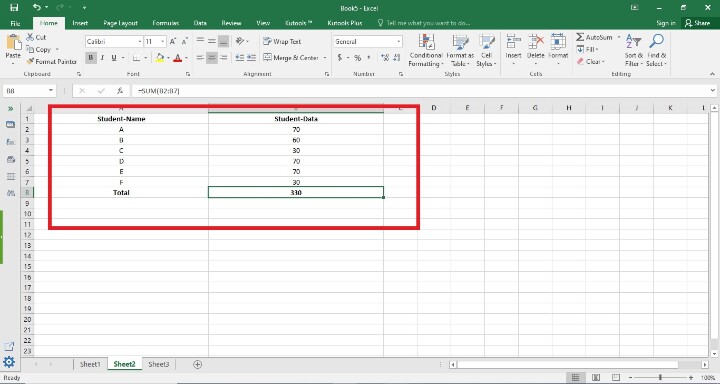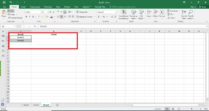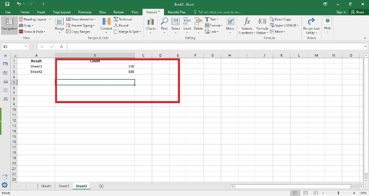 此步驟中,使用者可以看到**Sheet1**和**Sheet2**的總和。以下是此步驟的螢幕截圖。