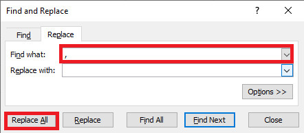 在Excel表格中,選擇要刪除所有逗號的B列,然後按Ctrl+F開啟“查詢和替換”對話方塊。在對話方塊中,將游標定位在“查詢內容”輸入框中,輸入逗號符號 (,),然後單擊“全部替換”按鈕,這將開啟一個彈出視窗。在彈出視窗中單擊“確定”按鈕,將顯示結果。它將刪除您在所選單元格中插入的所有逗號,如下所示。