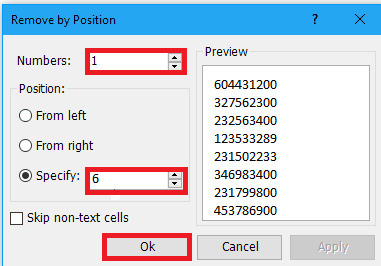 在對話方塊中,將指標放在“數字”選項卡中並鍵入1,然後啟用“指定”選項。在輸入型別中,輸入數字6,這將計算SSN中最右邊6位數字。它將在預覽窗格中顯示更新後的資料,然後單擊確定按鈕,如下所示。