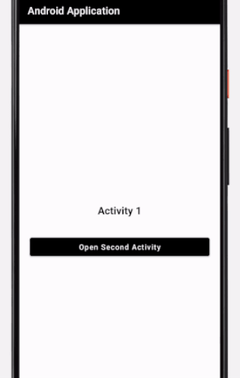 <?xml version="1.0" encoding="utf-8"?> <RelativeLayout xmlns:android="http://schemas.android.com/apk/res/android" xmlns:app="http://schemas.android.com/apk/res-auto" xmlns:tools="http://schemas.android.com/tools" android:layout_width="fill_parent" android:layout_height="fill_parent" android:orientation="vertical" tools:context=".MainActivity"> <!-- on below line creating a text view for displaying a heading--> <TextView android:id="@+id/idTVHeading" android:layout_width="match_parent" android:layout_height="wrap_content" android:layout_centerInParent="true" android:layout_margin="10dp" android:padding="4dp" android:text="Activity 1" android:textAlignment="center" android:textColor="@color/black" android:textSize="20sp" android:textStyle="bold" /> <!-- on below line creating a button to open a new activity--> <Button android:id="@+id/idBtnOpenSecondActivity" android:layout_width="match_parent" android:layout_height="wrap_content" android:layout_below="@id/idTVHeading" android:layout_centerHorizontal="true" android:layout_margin="20dp" android:text="Open Second Activity" android:textAllCaps="false" /> </RelativeLayout>