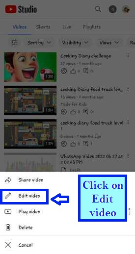 選擇要更改縮圖的影片。點選三個點進行編輯。