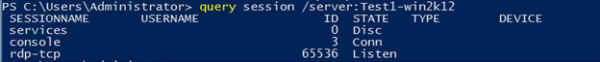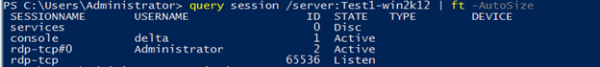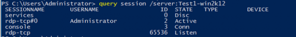 假設我們在名為 Test1-Win2k12 的遠端計算機上面有以下活動會話,