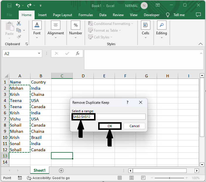 Set xrg = Application.InputBox("Select a range:", "Remove Duplicate Keep", _