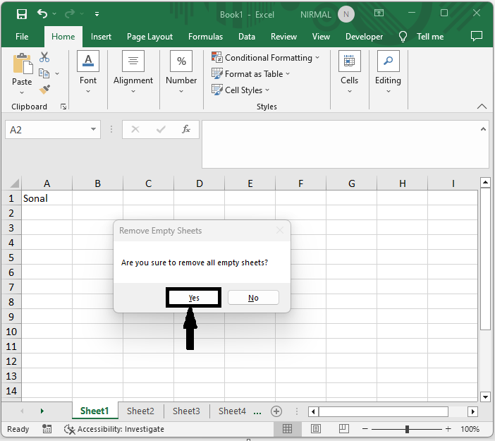 這就是如何在Excel中從工作簿中刪除空工作表的方法。