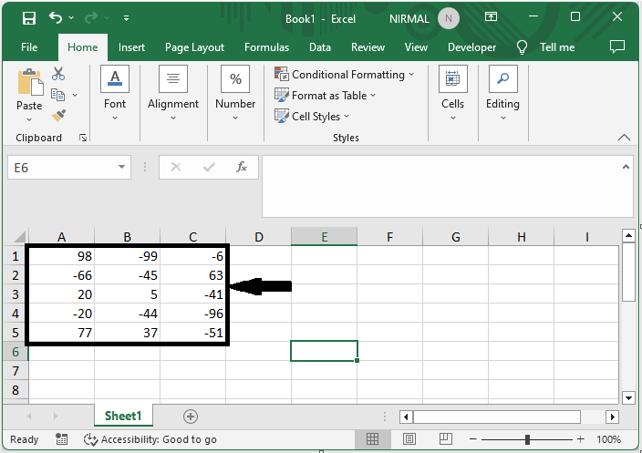 假設您有一個 Excel 表格,其中包含一些帶有負值的數字,類似於下圖所示。