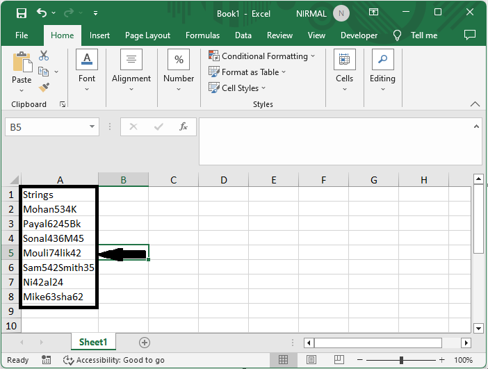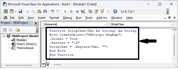 這裡,我們將首先使用VBA建立一個使用者自定義公式,然後使用該公式來完成任務。讓我們來看一個簡單的過程,瞭解如何在Excel中從字串、數字或單元格中去除字母。