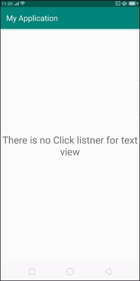 在上面的螢幕中點選TextView,它不會顯示任何內容,因為我們為setOnClickListener()傳送了一個空值。