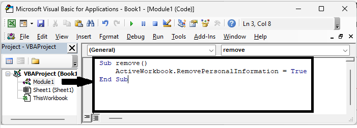 在本文中,我們將探討完成此任務的最簡單方法。為了完成操作,我們將執行我們剛剛建立的 VBA 模組,其中包含刪除個人資料的程式碼。在本分步教程中,我們將引導您完成從 Excel 電子表格中刪除個人資料的過程。在本節結束時,您將具備保護您的資訊和在共享 Excel 檔案時維護您的隱私所需的技能。
