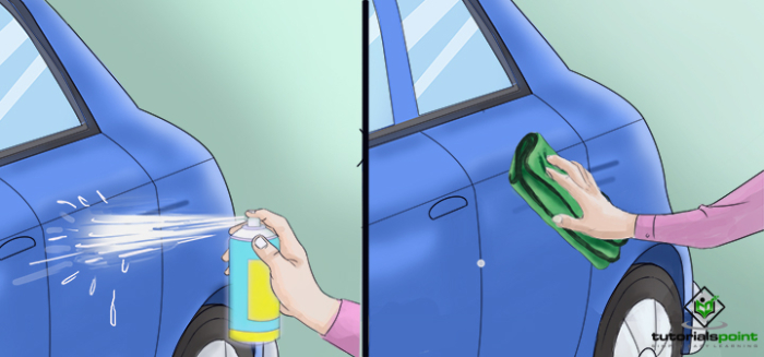 步驟 2——噴灑適量的劃痕去除劑,讓它在表面停留 2 到 3 分鐘。最後,取一塊超細纖維布,輕輕擦洗受影響區域,這將使液體被吸收並去除劃痕。