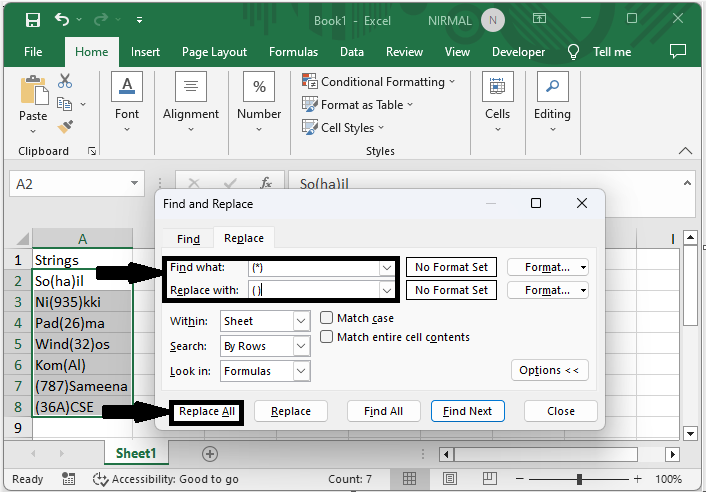 在這裡,我們將使用查詢和替換功能來完成任務。讓我們看一個簡單的過程,瞭解如何在 Excel 中刪除括號或圓括號內的文字。