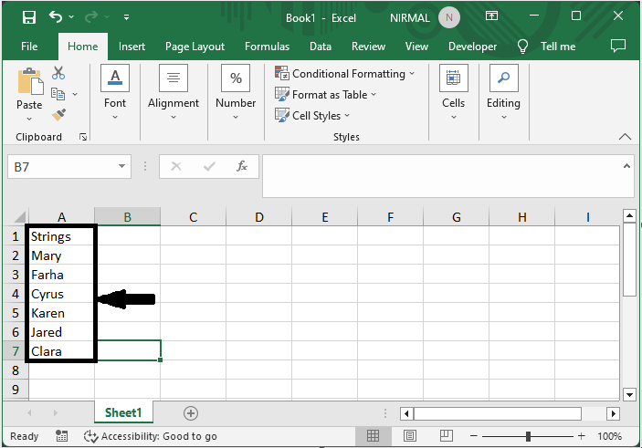 考慮一個 Excel 工作表,其中您提供了一個類似於下圖的字串列表。