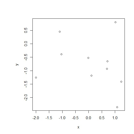 x<-rnorm(10) y<-rnorm(10) plot(x,y)