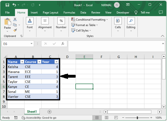 在這裡,我們可以在表格設計下編輯表格名稱。因此,讓我們來看一個簡單的過程,學習如何在 Excel 中重命名錶格。