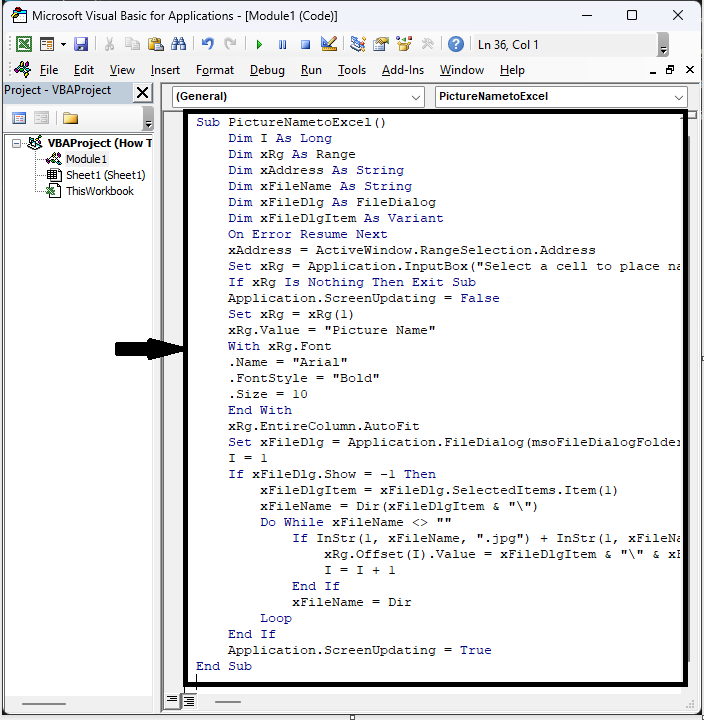 xRg.Offset(I).Value = xFileDlgItem & "" & xFileName